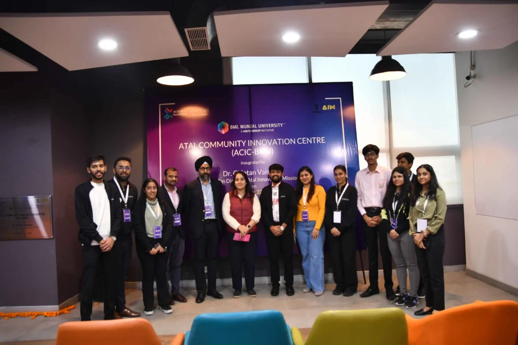 ACIC-BMU Foundation (ACIC-BMU) is set up by BML Munjal University (BMU) along with the support of Atal Innovation Mission (AIM), and NITI Aayog to promote and support innovation and entrepreneurship. It focuses on encouraging innovators within the university and the community around the university.22ND November 2022 marks the official launch of ACIC- BMU where the event started with welcoming guests from Atal Innovation Mission, Deans from BMU, Corporate Leaders and Senior members of BML Munjal University.Unveiling of the plaque took place at ACIC, Incubation Centre in the online presence of Dr. Chintan Vaishnav, the AIM team, and Senior Members, of BMU.